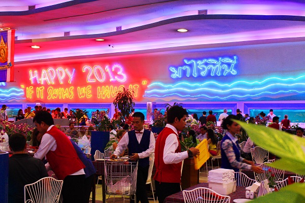 Bangkok'ta bulunan Seafood restaurantta çeşit çeşit deniz canlısı var. Reyondan istediğiniz ürünü satın alıp masaya gidiyorsunuz. Garson masaya gelip ürünleri sizden alıyor ve nasıl pişirilmesini istediğini soruyor.